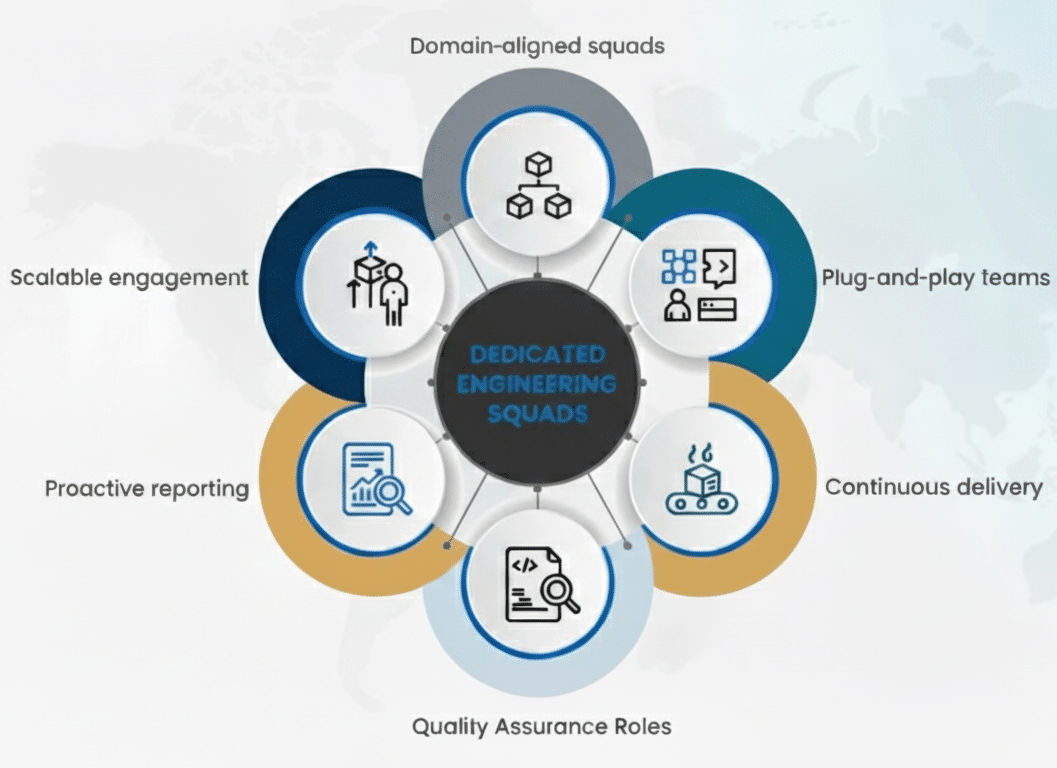 - Domain-aligned squads (Fintech, HealthTech, Enterprise SaaS)